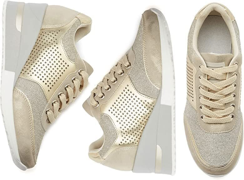 💗STYLISH DESIGN - Platform sneakers are stylish in style with a choice of glitter and mesh uppers, the colors are changeable, gold, black, white, beige and other colors match your diversified outfit
