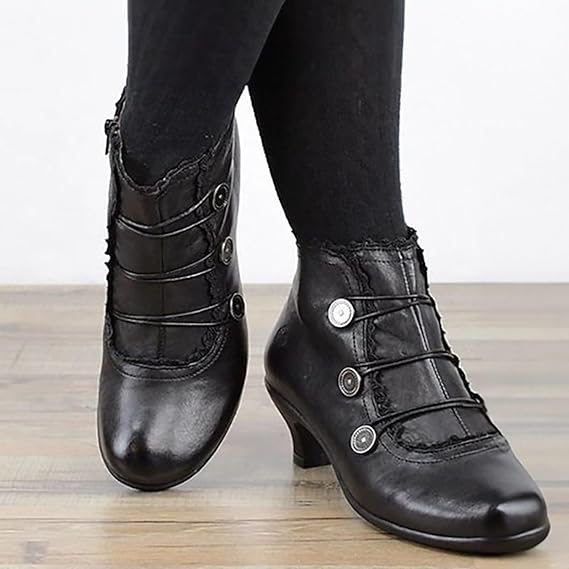 Women's Victorian Black Lace-Trimmed Button Ankle Boots